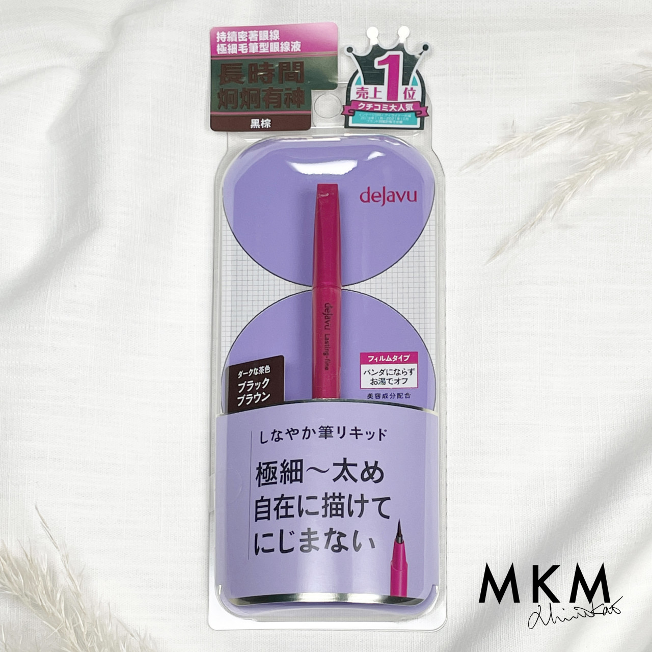 眼線液轉化成具有防水效果的「薄膜」。防皮脂、汗水、眼淚及耐揉。防水性眼線液,不造成暈染。